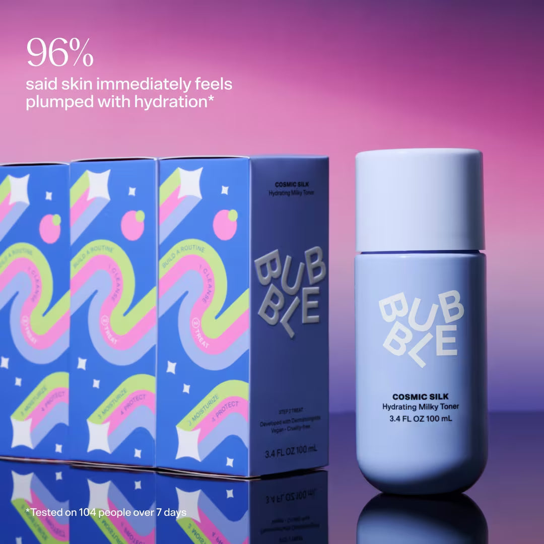 El Cosmic Silk de Bubble es un tónico hidratante en leche rico en ceramidas, clínicamente probado para hidratar, suavizar, rellenar y mejorar la luminosidad de tu piel. No es solo un tónico más: es una experiencia suave y sedosa que cambiará tu rostro para siempre.